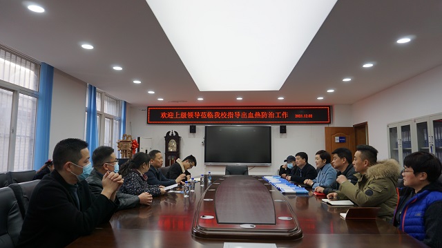12月2日下午,西安市卫健委信息规划处处长于涛、灞桥区卫生健康局副局长卫永峰一行到我校督导出血热防控工作。我校校长魏萍、校长助理杨永宏及相关部门负责人在综合楼会议室与督导组进行座谈。