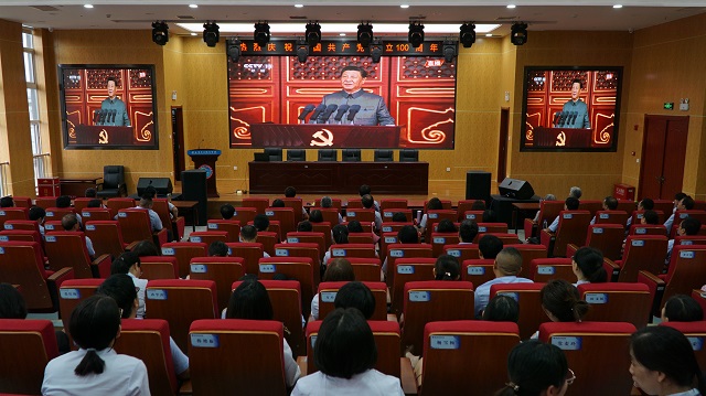 7月1日上午,我校组织全体教职工观看庆祝中国共产党成立 100 周年大会直播,共同庆祝党的百年华诞,认真听取习近平总书记发表的重要讲话。下午,各党支部召开党史学习教育专题组织生活会,并热议习近平总书记在庆祝中国共产党成立 100 周年大会上的重要讲话。