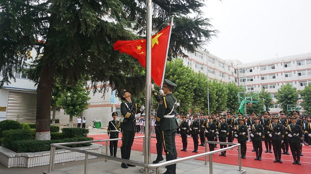 庄严的国歌声中,五星红旗冉冉升起,师生肃穆而立,向国旗行注目礼。8月30日上午8时,2021—2022学年第一学期第一周升旗仪式我校文化广场举行,全体师生参加。