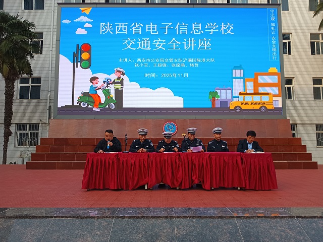 11月3日下午,我校联合西安市公安局交警支队浐灞国际港大队开展交通安全知识专题讲座,钱小宝、王超锋、张席腾、杨哲4名警官在文化广场为3000余名师生普及交通安全知识,学校校长助理杨永宏出席活动,安保科科长畅建主持讲座。