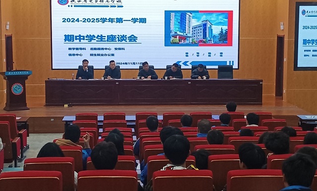 11月11日下午,我校教学督导科、安保科、后勤服务中心、信息中心、招生就业办联合召开2024—2025学年第一学期期中学生座谈会。会议由教学督导科科长余济好主持,相关科室负责人、教师与来自80多个班级的300余名学生代表座谈交流。