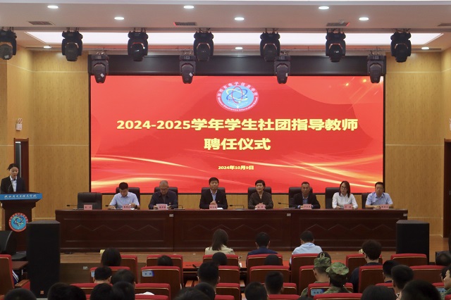 为加强学生社团指导教师队伍建设,充分发挥社团的重要作用,10月9日,校团委在综合实训楼五楼报告厅举行2024-2025学年学生社团指导教师聘任仪式。我校党委书记顾学福出席并讲话,学校领导班子成员、各党支部书记、各教学专业科负责人参加活动。仪式由团委副书记张燕主持。