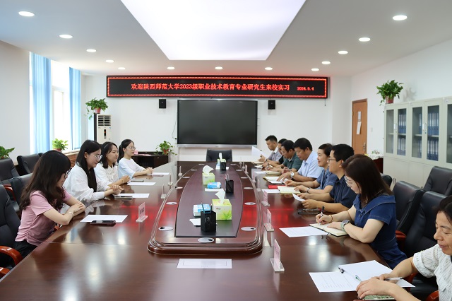 9月4日上午,陕西师范大学职业技术教育专业4名研究生来我校实习,欢迎会在综合楼一楼会议室召开。学校党委书记顾学福、校长魏萍及相关科室负责人出席,教务科长张建永主持会议。