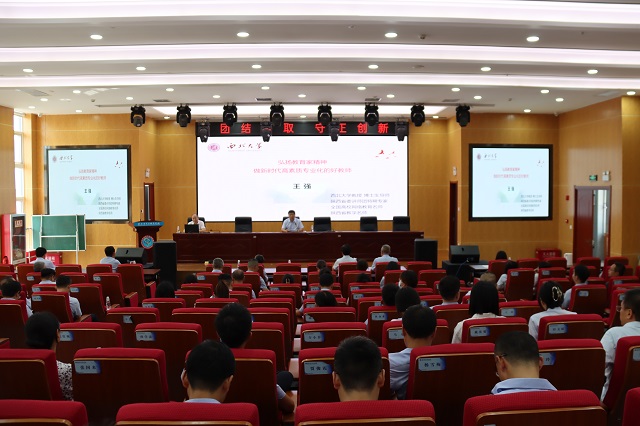 8月28日,我校秋季学期全体教职工培训大会在综合实训楼五楼报告厅成功举办,邀请陕西省教育科学研究院高等教育与教育政策研究中心主任郭为、西北大学教授王强作专题培训,学校领导班子成员以及全体教职工参加培训。