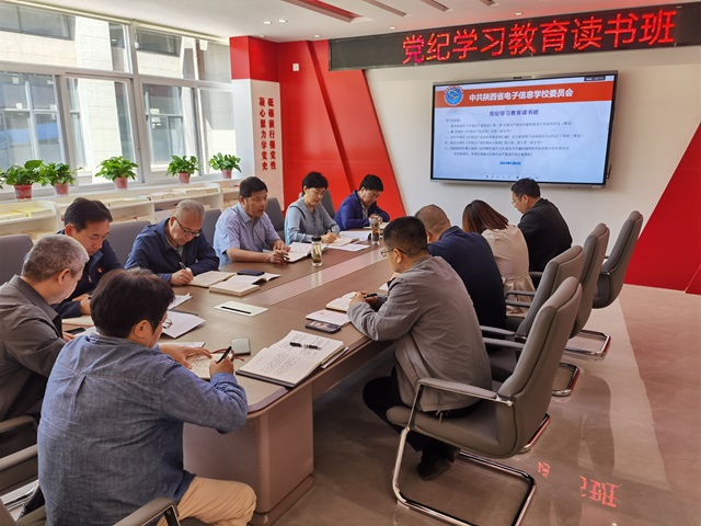 2024年5月6日至8日,中共陕西省电子信息学校委员会举办党纪学习教育读书班,党委书记顾学福主持,党委委员、校领导班子成员、各党支部书记参加学习。