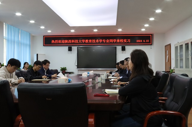 4月15日,陕西科技大学文化与教育学院张跃力教授、秦瑾若老师带领该院12名教育技术专业大三学生来我校实习。我校在综合楼一楼会议室召开欢迎会,学校党委书记顾学福、副校长李孝勇、相关科室负责人出席会议。