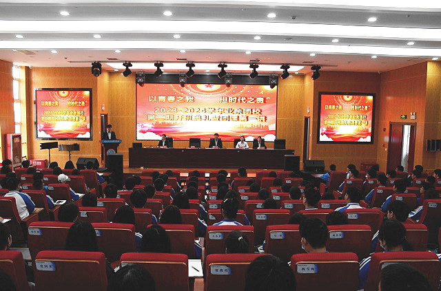 4月8日下午,我校2023—2024学年第二期业余团校开班仪式在综合实训楼五楼报告厅举行。学校党委书记顾学福,团委书记、学工部部长张伟东出席并讲话,团委副书记张燕讲授团校第一课,团委组织委员李笑晓、宣传委员骆丹及300名入团积极分子参加开班仪式。