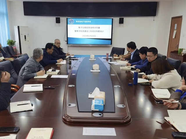 3月26日,我校在综合楼一楼会议室召开数字化赋能教育教学质量暨数字化校园建设三年规划方案专题培训会,副校长张中华主持,学校领导班子成员、各中层干部及信息中心相关人员参加会议。