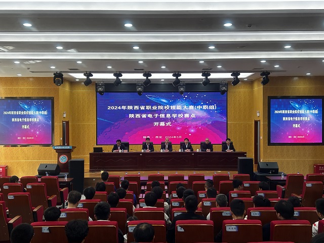 3月29日下午,2024年陕西省职业院校技能大赛(中职组)陕西省电子信息学校赛点开幕,来自全省各地200余名选手、领队、指导老师和工作人员齐聚我校实训楼五楼报告厅,校长魏萍致欢迎辞,党委书记顾学福宣布赛点比赛开幕,副校长李孝勇主持开幕式。西安航空职业技术学院教授、副校长侯晓方,我校党委副书记、副校长张中华,党委委员、校长助理杨永宏出席开幕式。