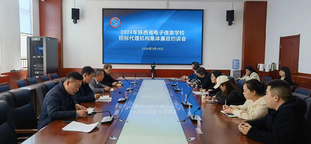 3月19日,我校在综合实训楼五楼会议室召开2024年招标代理机构集体廉政约谈会。党委副书记、纪委书记卢仁虎,校长助理胡振彪,纪检监审室主任祁卫国出席,项目办主任由君主持会议,秦招国际等8家新遴选入围的招标代理单位负责人参会。