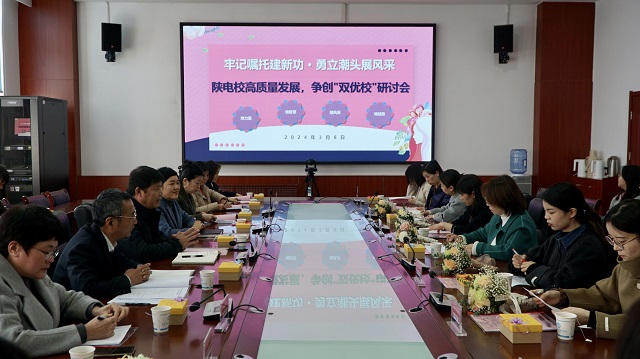 在“三八”国际妇女节到来之际,3月6日下午,“陕电校高质量发展 争创‘双优校’研讨会”在综合实训楼五楼会议室召开。学校党委书记顾学福、校长魏萍到会讲话,工会主席卢仁虎主持 。校工会女职工委员会委员、2024年巾帼标兵、各部门女工代表参加会议。