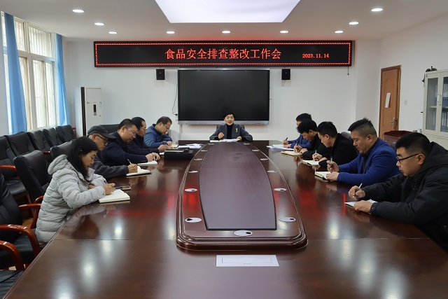 为深入贯彻落实教育部办公厅《关于开展学校食品安全排查整改工作的通知》,11月14日,我校在综合楼一楼会议室召开食品安全排查整改工作会暨落实“两个责任”月调度工作会,校长魏萍、校长助理杨永宏出席并讲话,饮食管理中心工作人员、餐厅经理、配送公司负责人等参加会议。
