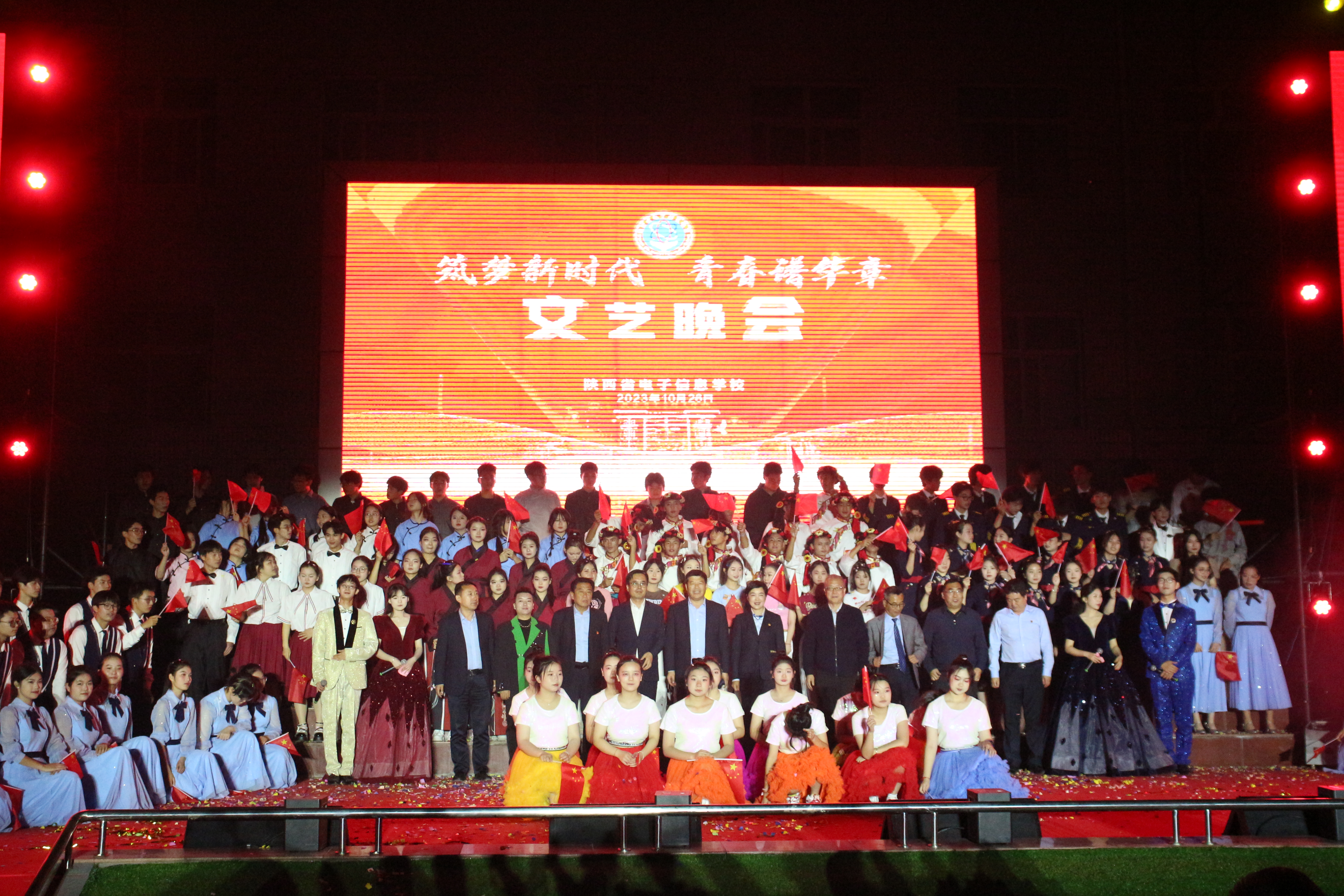 10月26日晚,我校文化广场上灯光璀璨、人头攒动,“筑梦新时代 青春谱华章”文艺晚会在这里隆重上演,师生同台献艺,用歌舞、朗诵、情景剧等方式讴歌伟大祖国、赞美幸福生活。