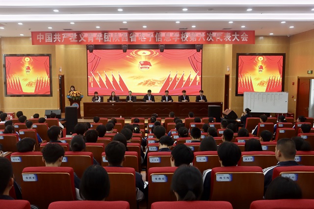 4月14日,中国共产主义青年团陕西省电子信息学校第六次代表大会在我校五楼报告厅隆重召开。党委书记顾学福,党委副书记、纪委书记、工会主席卢仁虎,副校长李孝勇,校长助理杨永宏,工会副主席亓兰瑞,团委书记、学工部部长张伟东出席会议,陕西省建筑材料工业学校、西北工业学校、陕西交通技师学院、陕西省水利技工学校、秦都区职教中心5所兄弟院校团委书记特邀出席,9位团委委员候选人、65位团员代表、388名列席代表济济一堂共同参加这场盛会。大会审议通过了共青团陕西省电子信息学校第五届委员会工作报告,选举产生了共青团陕西省电子
