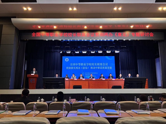 为深入学习贯彻中办、国办《关于深化现代职业教育体系建设改革的意见》,提升职业学校关键能力,深化产教融合,推动职普融通,全国中等职业学校校长联席会议于4月15日在上海召开“学习贯彻两办意见专题研讨会”。教育部职成司副司长林宇出席,来自教育部门、行业协会、中职学校180余名代表共聚一堂,交流学习贯彻《意见》经验,为推动新时代中职教育的高质量发展贡献智慧和力量,我校校长魏萍参会。