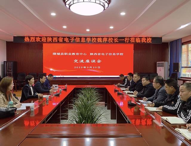 3月20日上午,我校校长魏萍、教务科科长张建永及相关科室负责人赴蒲城县职教中心座谈交流,参观虚拟仿真实训基地。