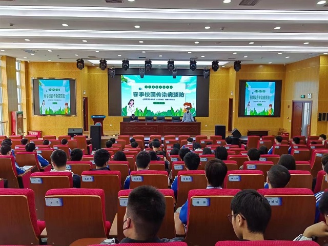 3月28日,我校后勤服务中心在实训楼五楼报告厅开展春季传染病及近视眼防控宣讲活动,校医姚志民主讲,各班级派学生代表参加。