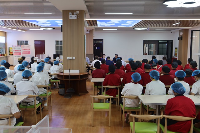 9月20日上午,2022-2023学年第一学期食品安全工作会在餐厅二楼大厅召开。校长魏萍、副校长梁文华参加会议并讲话,饮食管理服务中心职工及餐厅全体工作人员参会。