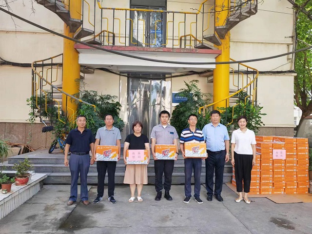 8月10日上午,我校党委书记顾学福、校长魏萍、纪委书记兼工会主席卢仁虎带领校工会成员慰问高温酷暑下坚守岗位的一线教职工及校内施工人员。