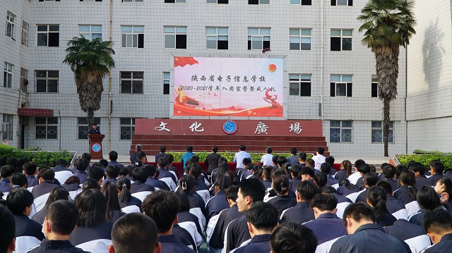 在雄壮的国歌声中,入团宣誓仪式拉开帷幕,学工部副部长祁卫国宣读了194名学生加入共青团的决定,新团员上台,高举右手,紧握拳头,郑重宣读入团誓言。在十八岁成人礼仪式上,年满18岁的学生代表面对国旗庄严宣誓,铿锵有力的誓言声响彻整个文化广场,校领导为他们佩戴徽章。