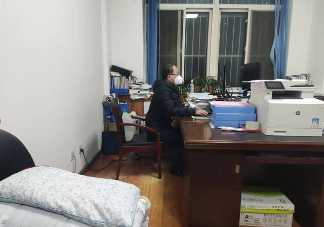 作为疫情防控工作领导小组副组长和综合协调组负责人,张勇、王胜武从12月18日清晨返校时就做好 “长期战”准备,安排好家里,备齐日用品,第一时间投入战“疫”。他们团结协作、相互配合,按照省、市、委厅疫情防控工作要求,结合学校实际,积极协调各部门工作,及时跟进疫情防控情况,实时制定、修订学校疫情防控工作方案、预案、流程及具体要求;对接委厅、区相关部门,及时传达上级文件、会议精神,上报全校疫情防控数据、信息采集及疫情防控工作情况,组织全校职工配合所属区域进行疫情流调。他们随时要应对不断趋紧的防控形势,协调学校防控制度措施的调整升级,处理疫情防控突发紧急事务,24小时值守疫情防控应急电话,办公室窄窄的沙发就是他们十多个晚上和衣休息的“床”。“疫情防控责任重大,如何守住学校疫情防控工作良好形势,确保全体师生健康安全……”这是他们两人每天谈的最多的话题。使命在心,责任在肩,他们在战“疫”关键时刻彰显着党员干部的担当。