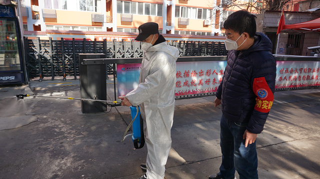 疫情形势严峻,学校封控管理,这都给学校的后勤服务工作带来极大的压力和挑战。作为负责后勤服务保障的领导干部,杨永宏及时组织学校安保、后勤服务中心等部门,严格落实门禁管理,仔细排查整改安全隐患,积极储备、定期发放防疫物资,准备观察室、隔离室,做好水、电、暖、气及师生洗浴等保障。他与后勤服务中心主任亓兰瑞一同制定了全校定时消杀计划,主动联系社区组织学校全员核酸检测,根据实际情况制定核酸检测、发热送诊、就诊入校隔离等工作流程。当出现学生隔离紧急情况时,亓兰瑞不顾个人安危,积极配合社区开展具体实施工作。两位同志认真负责、勇于担当、严谨务实、有条不紊,为全校疫情防控工作提供了坚实的后勤保障。