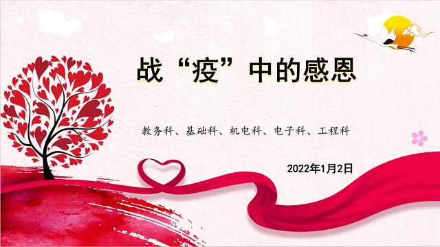 2021年12月30日起,在教务科组织,各教学专业科、学管部门的协助下,我校陆续开展了4次线上疫情防控专题思政课,包括疫情防控形势,抗击疫情过程中的感人故事、英雄事迹、抗疫精神,疫情防控期间的心理调适、积极健康的生活、学习习惯养成等内容,引导学生树立正确的世界观、人生观、价值观,科学认识疫情、积极应对疫情,从防疫、抗疫的过程中汲取力量,把困难当磨砺,学会感恩、致敬英雄、勇于担当、乐于奉献。