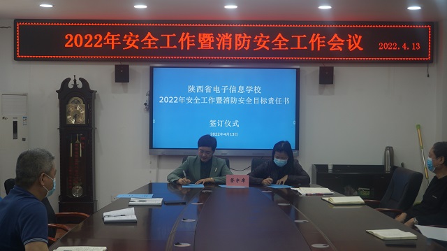 4月13日下午,我校召开2022年安全工作会议,签订年度安全责任书。会议由党委书记顾学福主持,学校领导班子成员、全体中层干部参加会议。