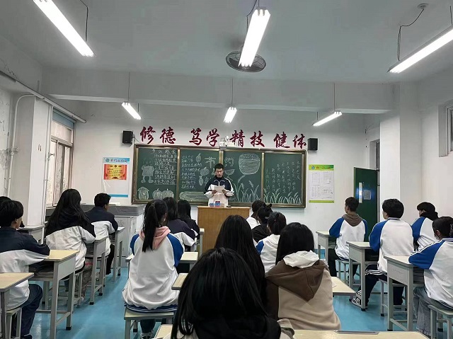 -----主题班会,普及粮食安全重要性。各班召开主题班会,集体观看粮食安全类宣传片,班主任、班干部向同学们宣传讲解我国目前的粮食安全形势、供给状况、浪费现象以及健康饮食等知识,让大家深刻认识到粮食安全的重要性。此外,由学生会生活部牵头,各班发起《爱粮节粮厉行节约》倡议,号召同学们养成良好的就餐习惯,争做“光盘行动”的践行者和推广者。