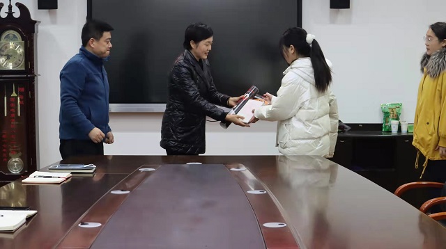 11月29日下午,第五党支部联系校领导魏萍校长、宣传委员张伟东、组织委员王林飞、党员祁卫国等在综合楼一楼会议室慰问我校家庭困难的两名学生,赠送学习用品,进行座谈。