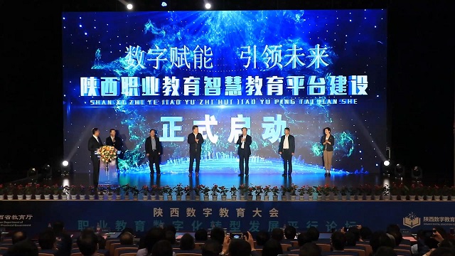 由陕西省委教育工委、省教育厅主办的陕西省数字教育大会于4月20日召开,职业教育数字化转型发展平行论坛在陕西工业职业技术学院经开校区举行,陕西省人大常委会教科文卫委主任委员王建利,中共陕西省委教育工委委员、省教育厅副厅长王海波出席并致辞,教育部职成司职业院校发展处处长任占营视频致辞,中共陕西省委教育工委、省教育厅二级巡视员高巍主持会议。我校校长魏萍参加会议并代表全省中职学校同其他领导一起按下陕西职业教育智慧教育平台启动按钮。