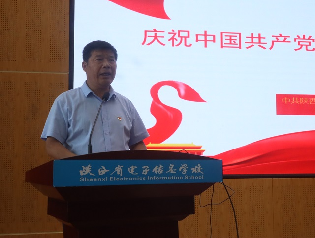 顾学福回顾了一年来学校党建工作取得的成绩,并提出三点要求,一要加强党建引领,推动学校事业优质发展;二要夯实党建基础,分类指导推进党组织建设;三要彰显党员本色,谱写新时代陕电人的红色乐章。他强调,在今后的工作中,我校要不断加强党的建设,把党的政治优势、组织优势转化为学校团结奋进的合力、业务工作的助力、改革发展的动力。深入开展党建+业务工作体系创新,把党建工作放到服务国家“双优学校”创建大局中来谋划推进,以高质量党建推动学校高水平优质发展,深化“三心、两促进、五融合、五发展”陕电“3255”党建品牌建设。面对职业教育新要求,全体党员干部要以更加强烈的使命担当、更加饱满的精神状态,为创建国家优质中职学校和优质专业做出新的更大贡献,以优异成绩向党的生日献礼。