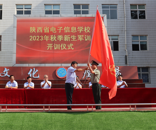 8月24日上午,晴空高朗,秋风送爽,我校2023级1020名新生身着迷彩军训服,整齐列队,在文化广场集结。军训开训仪式在国歌声中拉开序幕。学校领导班子成员和相关科室负责人出席开训仪式,党委书记顾学福授军训旗,校长魏萍讲话,纪委书记卢仁虎主持仪式。