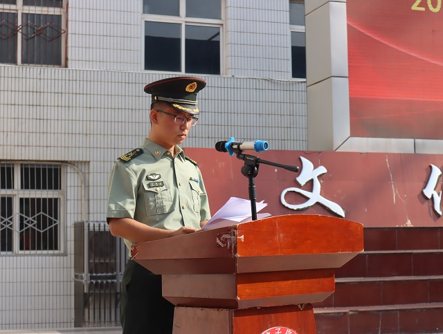 常明鑫代表全体教官发言,表示将以身作则,认真履行教官应尽的职责,以军人的姿态完成军训任务,以兄长之情关心爱护学生。机电2333班李紫涵代表新生发言,表示将服从命令,听从指挥,苦练基本功,磨炼意志,把在军训中养成的良好习惯,学到的好思想、好作风继续发扬下去。