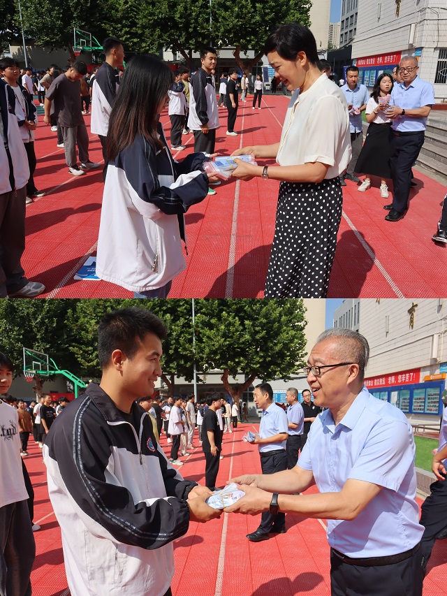 校长魏萍,副校长张中华为师生发放宣传网络安全知识书签