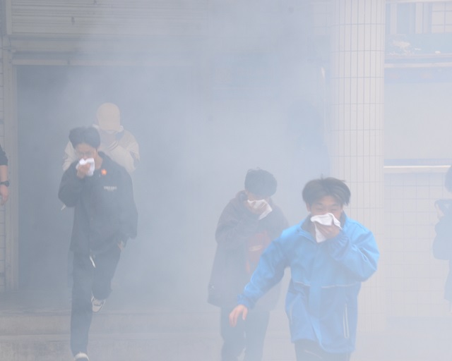 ——开展应急疏散演练。3月27日,我校分别在学生公寓和学生餐厅开展应急疏散演练。演练前,相关部门负责人和各班班主任向师生讲解疏散逃生要领及注意事项。演练开始,各楼层安全疏散人员迅速到位,随着哨声响起,演练师生和工作人员用湿毛巾捂住口鼻,弯腰俯身,沿着预定应急疏散路线快速有序地撤离至指定地点。校长助理杨永宏对本次应急疏散演练师生的快速反应给予肯定,希望师生不断增强安全意识,提高逃生避险、自救互救和应对突发事件的能力。