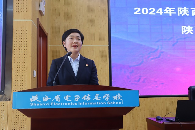 魏萍代表学校对各位领导、参赛选手、指导老师、领队及裁判员的到来表示热烈欢迎。她在致辞中指出,2024年陕西省职业院校技能大赛(中职组)三个赛项的比赛在我校举行,既是对我校教学成果的一次集中检阅,也是对我校组织能力、服务水平的一次重要考验,更搭建了一个广阔的教学交流平台,为我校提供了一次向兄弟学校学习交流的宝贵机会。学校将竭诚当好东道主,全力以赴为大赛创造一流的比赛条件,为各方嘉宾和选手提供全方位、高质量的服务。预祝参赛选手取得优异成绩、大赛获得圆满成功。