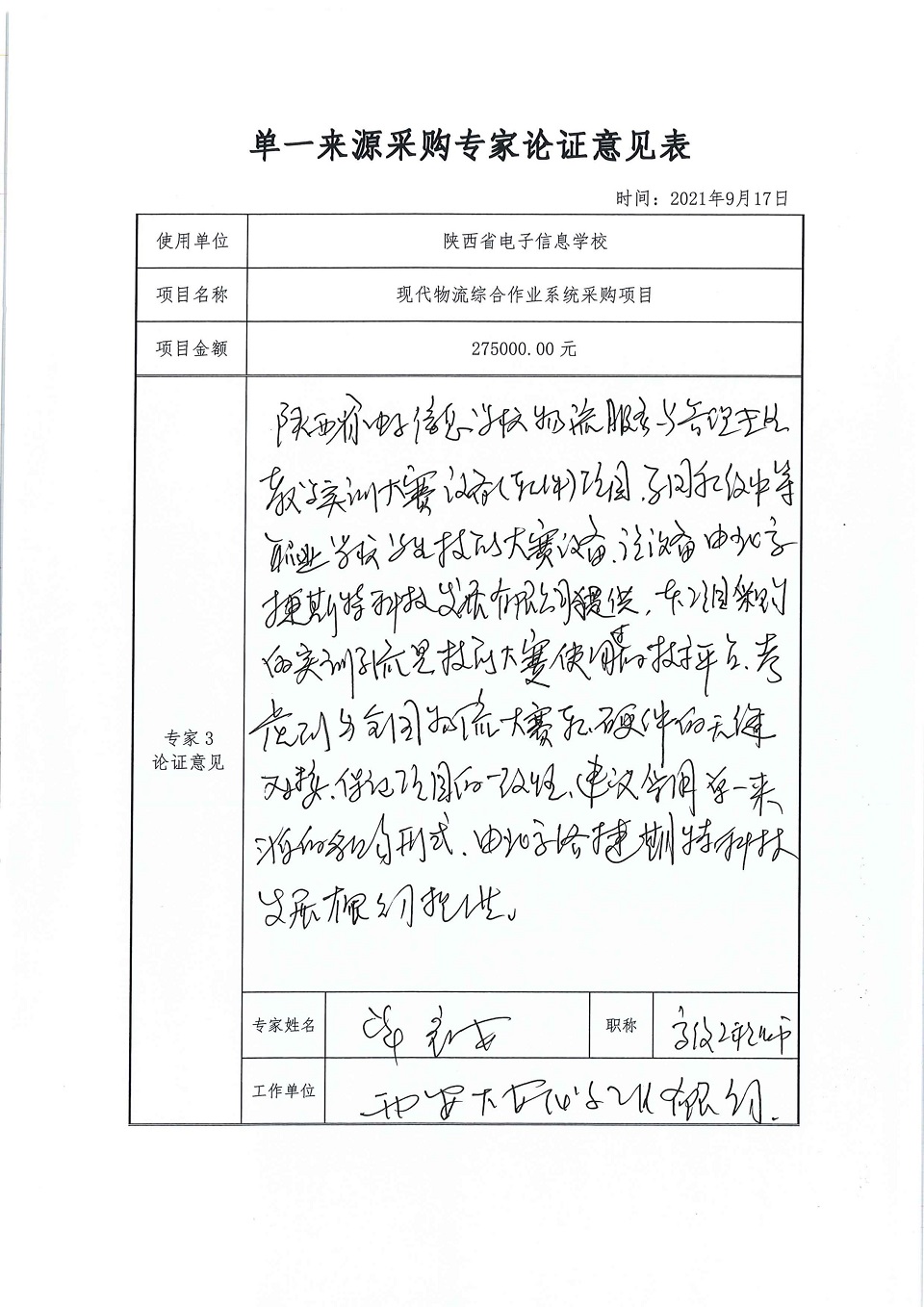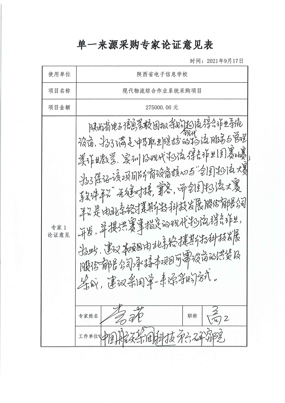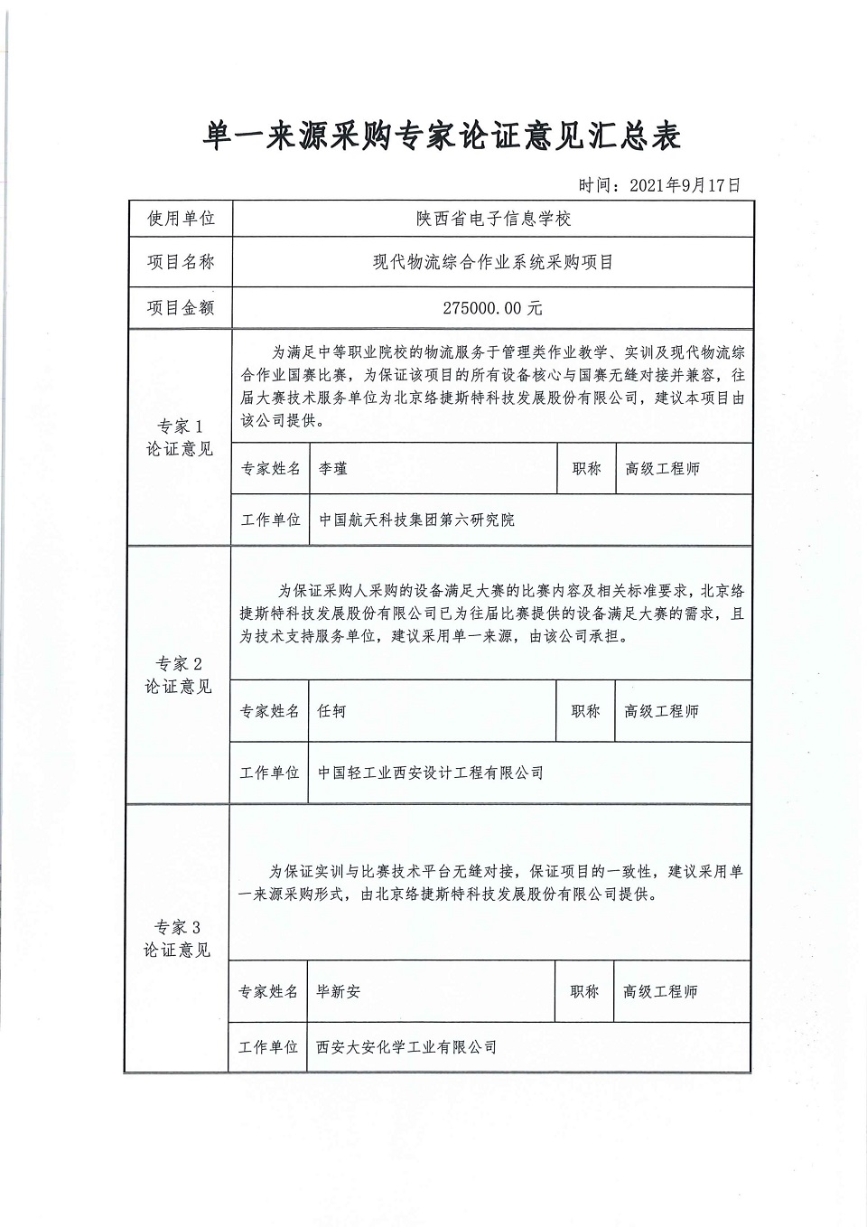 单一来源采购专家论证意见汇总表