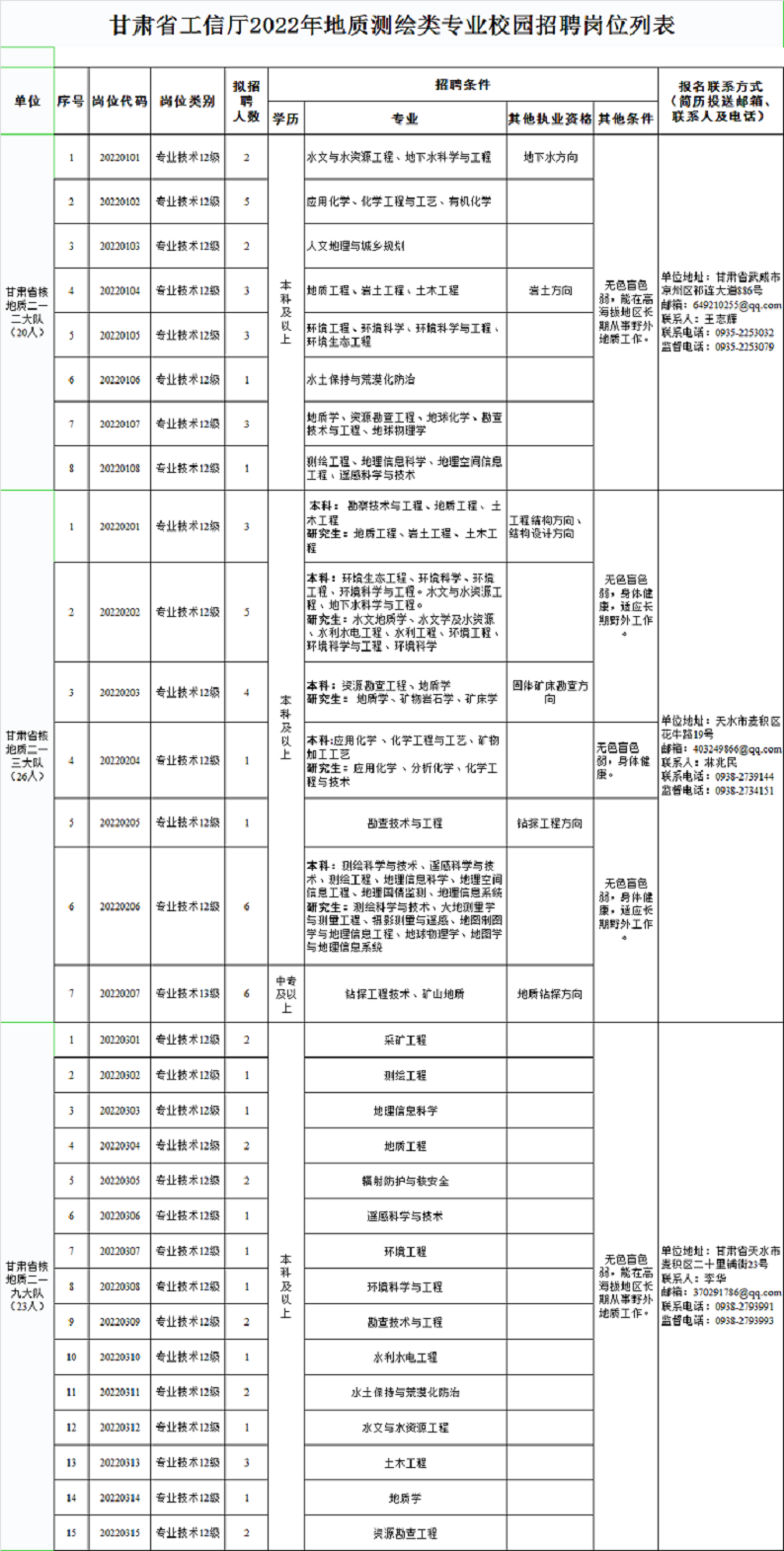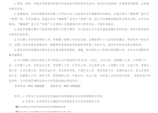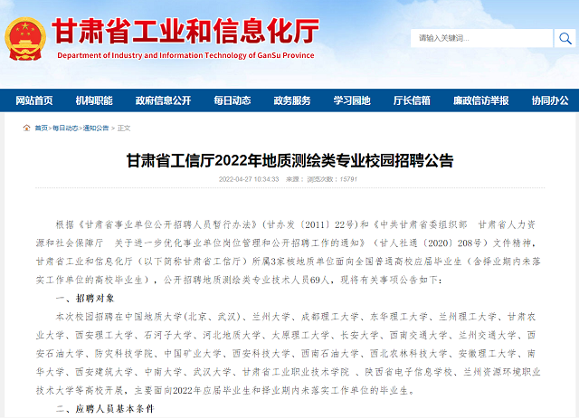 附件1:《甘肃省工信厅2022年地质测绘专业校园招聘公告》