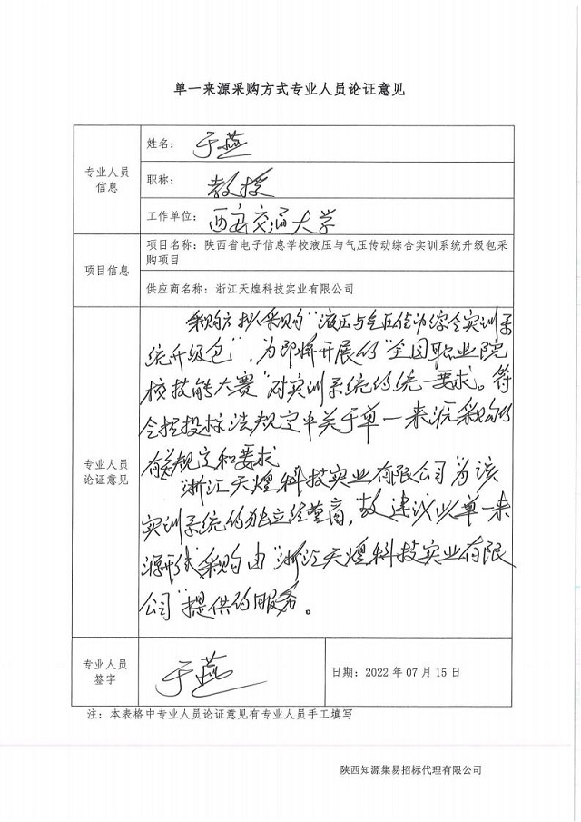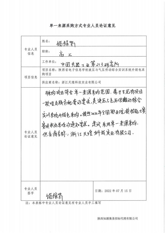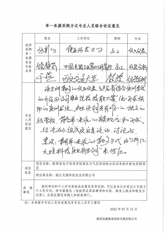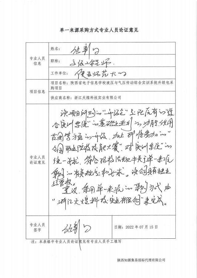采用单一来源采购方式的原因及说明:本次项目所购的“升级包”是在原有的综合实训系统的基础上进行的功能、运用范围等方面的升级,加上即将参加的“全国职业院校技能大赛”对实训系统的统一要求,该公司具有独立经营权,符合招标法规中关于单一来源采购的有关规定及要求。