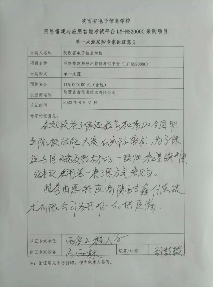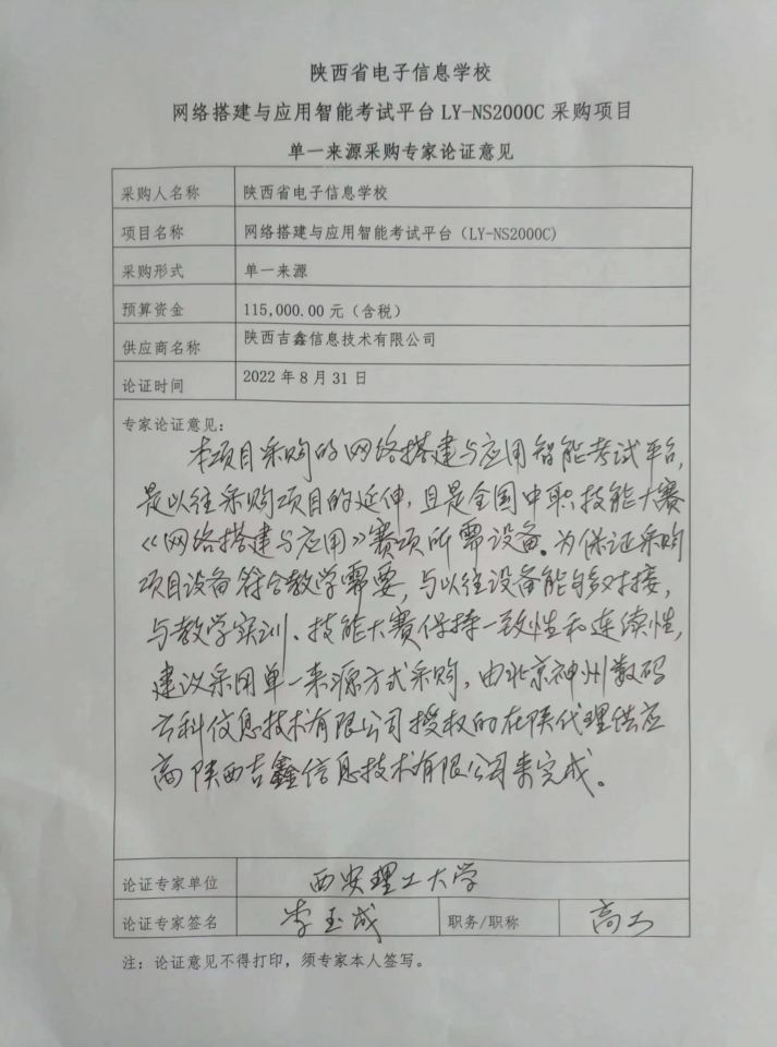 项目名称:陕西省电子信息学校网络搭建与应用智能考试平台(LY-NS2000C)采购项目