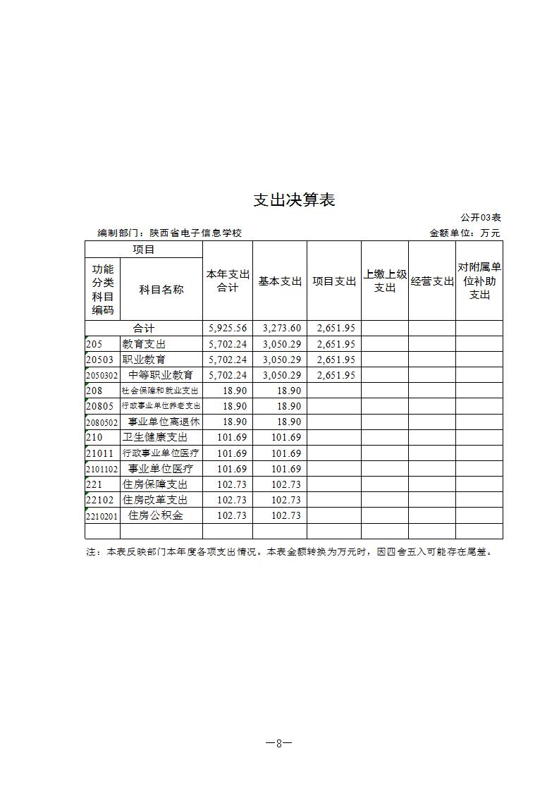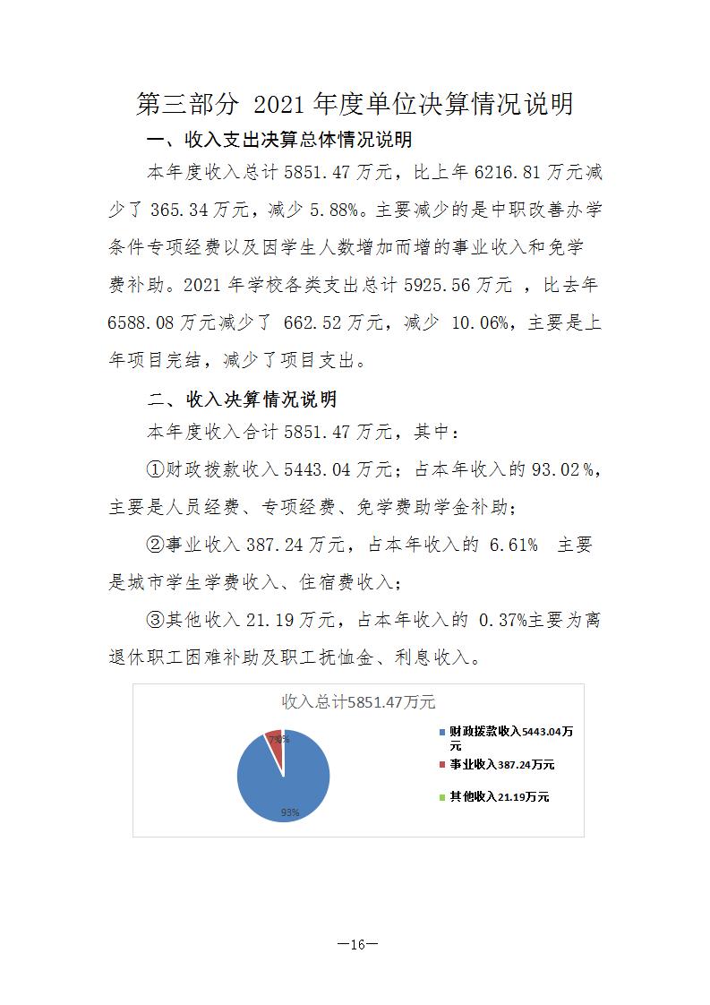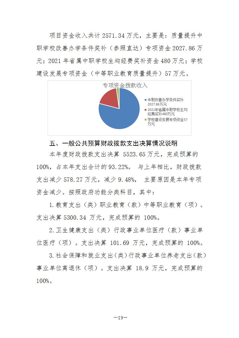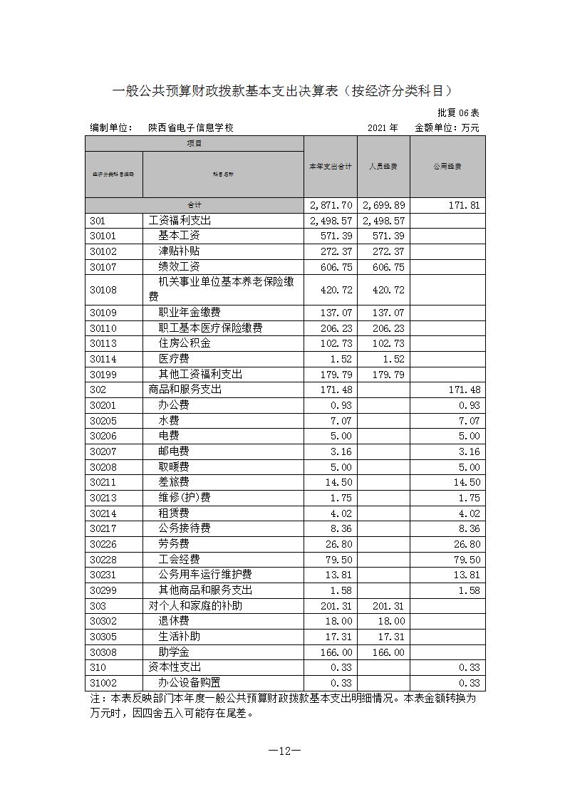 陕西省电子信息学校2021年度单位决算公开说明