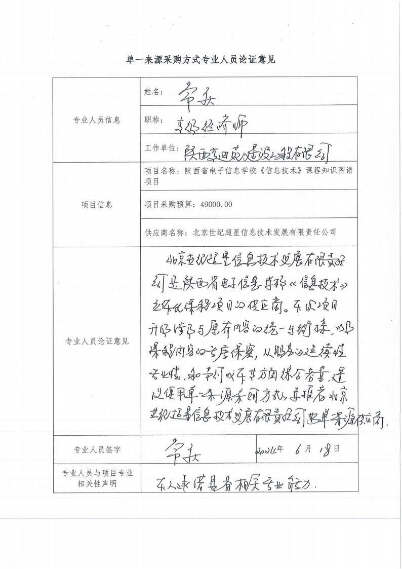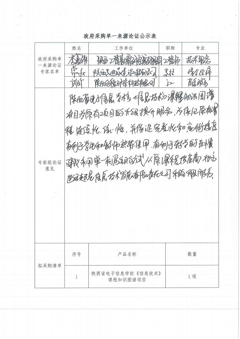 陕西省电子信息学校《信息技术》课程知识图谱项目单一来源采购方式论证结果公示
