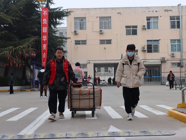 ——贴心服务,全力保障。开学日,校园内响起欢快的音乐,门口欢迎学生的“星黛露”、“维尼熊”、“顽皮豹”等人偶早早到位,全体教职员工和志愿者也坚守在自己的岗位上,全心全意为进校学生服务,热烈、欢乐的开学氛围十足。返校的同学们主动测温进入学校,不一会儿,校园就热闹了起来,来来往往的“红马甲”、“红袖章”成了一道亮丽的风景线,大家热心帮助学生搬运行李,在各班班主任处完成报到手续。随后同学们进入公寓楼,热情地和宿管阿姨打招呼,认真打扫卫生收拾床铺。一番忙碌过后,与许久不见的舍友聊起寒假生活,分享从家乡带来的特产,宿舍里欢声笑语不断,大家怀着对新年的憧憬开启了新学期的美好生活。